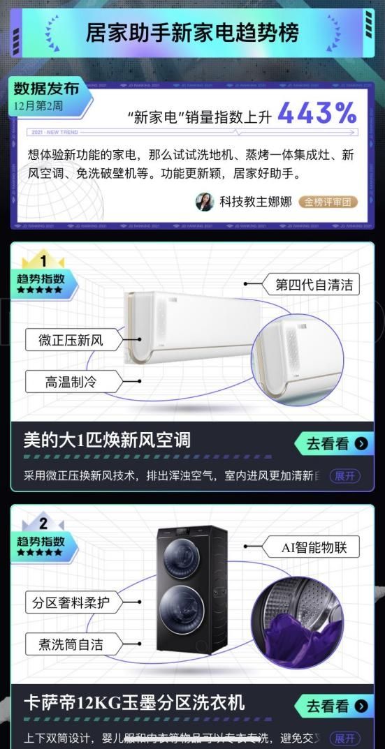 安全有保障生活更要有品质,跟着京东家电趋势榜单买潮货家电,开启潮智新生活。工作繁忙,家务琐事无暇顾及,没关系,智能家电可以化身居家好帮手,帮你解决家务难题。