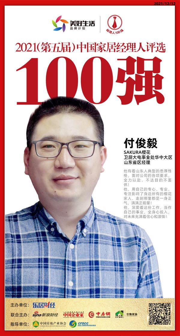 快讯:SAKURA樱花付俊毅荣获“2021中国家居经理人100强”