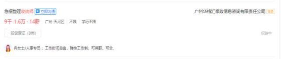 不仅如此,受行业火热影响,越来越多从业者开始加入收纳整理师行业。智联招聘显示,招聘整理收纳师的企业多集中在北京、广州、深圳等地,薪金多在6千至1万不等,广州一企业更以9千至1.6万,14薪的待遇吸引从业者的加入,而对于从业要求,仅要求应聘者持有一般健康证(B类)。另,大多数企业对于是否接受培训,并无要求。桃子老师解惑答疑:1--无用符号--87---无用符---6588--无用符号--1331(V同)