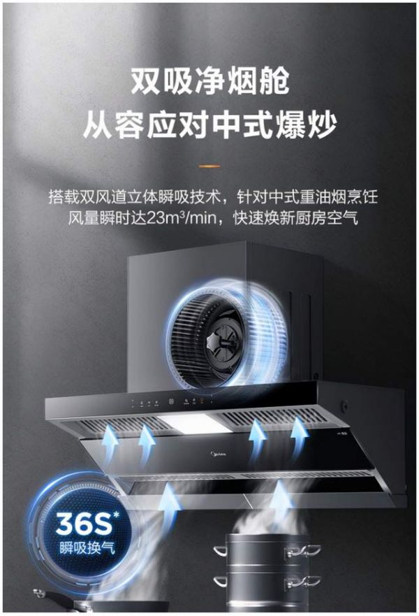 玲珑机身不换柜 美的新静吸油烟机CQ5顶侧双吸创领新物种