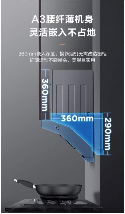中式烟机自1984年发展至今,已经有30余年的历史,漫长的发展历程让中式烟机拥有更为成熟的技术,但同时也禁锢了发展空间。当前传统中式烟机大都采用顶吸式技术,占地空间大、易碰头,而且具有油烟不分离、难以清洗等缺点。因此,近年来许多消费者转而投入了欧式烟机的怀抱,但欧式烟机的“T”型或者塔型的外观构造同样占据很大空间,其次侧吸式的拢烟效果并不理想。