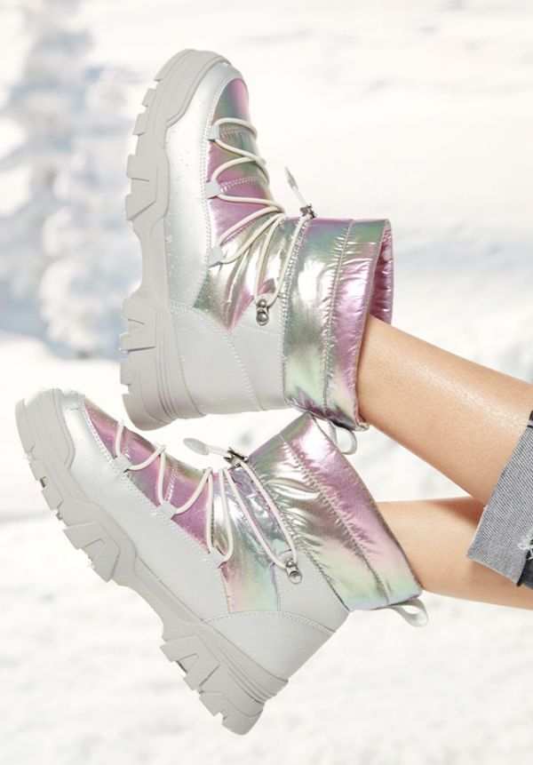 Look 1:活力无限——亮面压胶羽绒服F12W1411+时尚户外雪地靴H89W1412