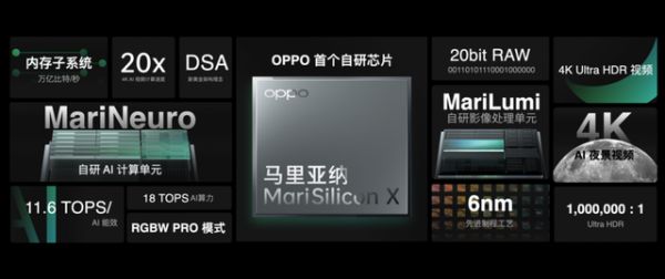 作为OPPO首款自研NPU芯片,马里亚纳MariSilicon X采用了全新的6nm制程工艺,并且采用了DSA全新的黄金架构理念,使其具备了18TOPS的AI超级算力,并且拥有行业领先的11.6TOPS/W的能效表现,综合实力相当强劲。