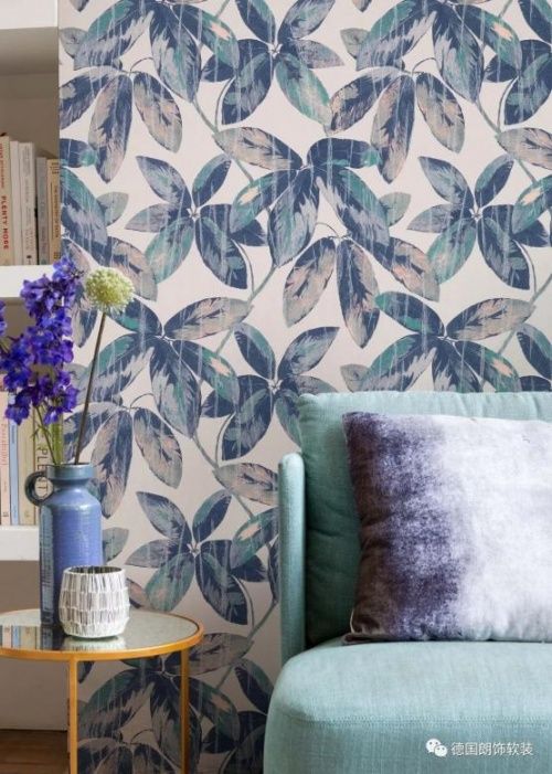 在rasch壁纸系列中,这个优雅治愈的颜色,搭配大小不一的树叶图案,使墙面灵动,充满活力。