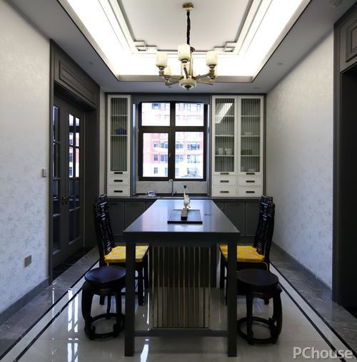 茶室、条案、玄关结合更能符合本空间的气场,在灯光氛围的衬托下,约三五好友一起品茶聊天,何不是一种享受。