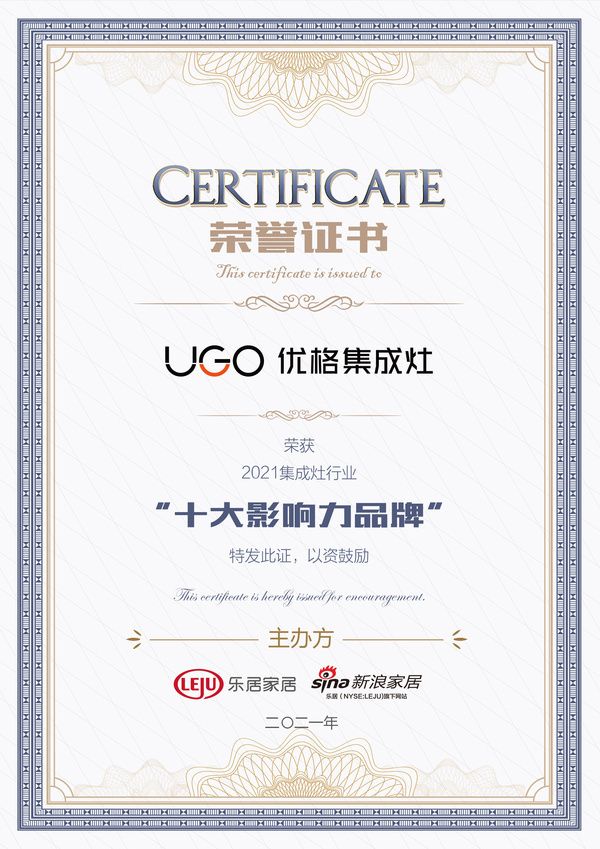 实至名归,优格集成灶荣获新浪家居“2021年集成灶行业十大影响力品牌”殊荣