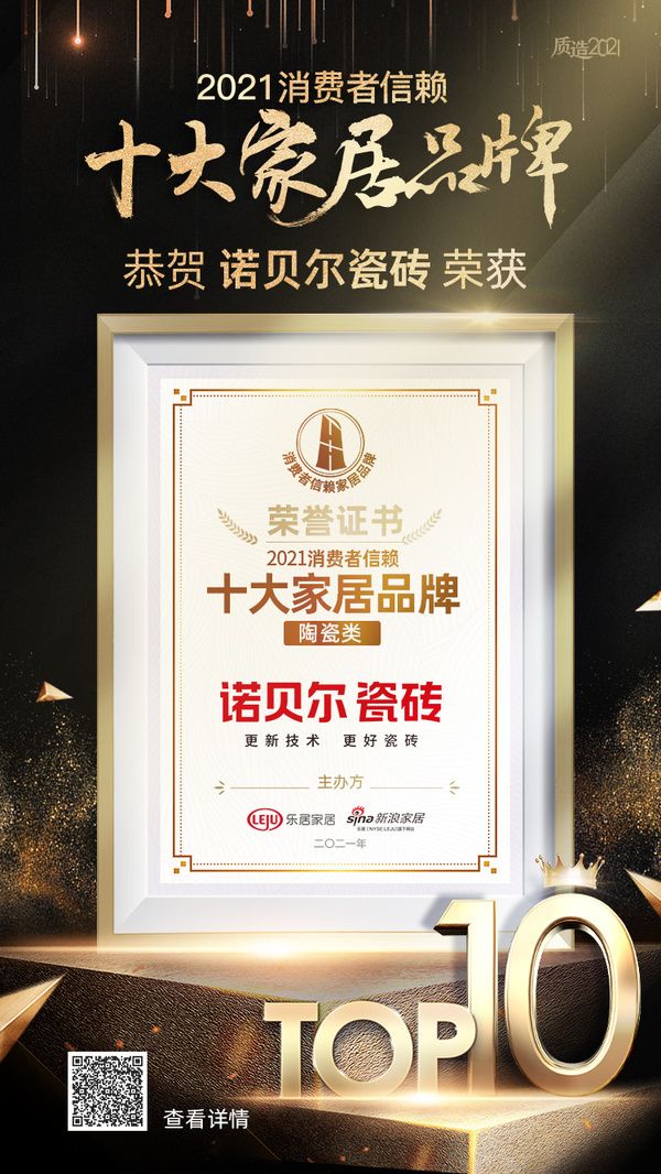 快讯|诺贝尔瓷砖荣获「2021消费者信赖十大陶瓷品牌」称号