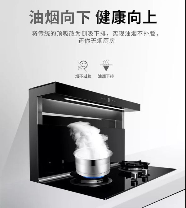 众所周知,吸烟口离油烟越近,排烟效果越好。集成灶吸烟口到炊具的距离大约是25-875px,油烟还没有进入扩散区就被吸走,净烟率达到99.6%,而普通的抽油烟机仅能达到70%-80%。非要说集成灶的缺点的话,炒菜闻不到菜的香味算是一个吧!