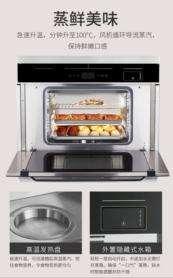它搭载速热蒸汽盘,5分钟制热达100℃,360°循环动态加热,轻松锁住水分,蒸除油腻,让食物鲜嫩多汁,保留原汁原味,新鲜不串味,口感美味更纯正。
